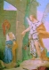 Le faste triomphal du cycle de Würzburg s'atténue dans le plafond de l'église vénitienne de la Pietà (1754-55) et surtout dans les fresques de villa Valmarana près de Vicence (1757), où Tiepolo représenta dans un style plus intime et plus chaleureux les aventures sentimentales tirées de poèmes épiques et chevaleresques, en en donnant une interprétation d'une grande délicatesse. Dans les années qui suivirent, l'artiste exécuta des oeuvres importantes : décoration de plusieurs salles du palais Rezzonico à Venise ; Assomption sur le plafond de l'oratoire de la Purità à Udine ; Apothéose de la famille Pisani dans la villa Nazionale de Strà. Il partit peu après pour Madrid (1762) où il passa ses dernières années au service de Charles III qui lui commanda les fresques du Palais Royal (1762-66) : Gloire d'Espagne sur le plafond de la salle du TrĂ´ne ; Apothéose de la monarchie espagnole dans une autre salle et apothéose d'Enée dans la salle de la Garde. Pour ce travail d'une exceptionnelle solennité, Tiepolo ne renouvela pas les inventions heureuses des époques antérieures mais sut créer des oeuvres tout à fait dignes de sa renommée de " peintre universel ". |