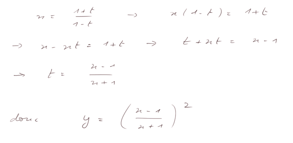 où t prend toutes les valeurs réelles, sauf 1.