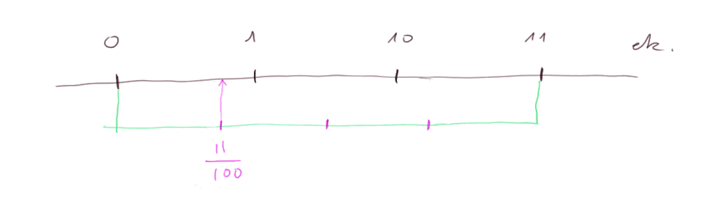 D'ailleurs comme pour 2,5 qui est 25/10, en système binaire 10,1 = 101/10 (c'est-à-dire "cinq" divisé par "deux").