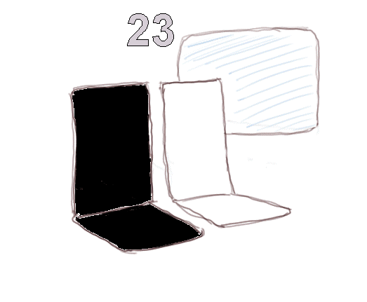 Il faut reconnaître que les idéogrammes sont parfois difficiles à comprendre, même quand on a fait un effort pour "les rendre clairs". Dans certains trains par exemple, dans le rang formé des places 23 et 24, pour préciser quelle est la place 23 et quelle est la place 24, sur le panneau à côté du rang la compagnie des chemins de fer a mis les deux petits dessins suivants. C'est un exemple de message "idéographique" qu'on ne peut pas interpréter. Et quand on se promène dans certains bâtiments modernes ou quartiers d'urbanistes couverts de "pictogrammes", on se dit parfois qu'on aurait aimé que les concepteurs partissent du principe que ce n'est pas parce qu'on se promène qu'on est analphabète. L'écriture a précisément été inventée pour que ses signes, contrairement aux petits dessins, aient une lecture unique.