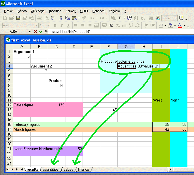 sheet "values". The formula multiplies them, the result (which is not displayed here, since we display
