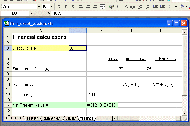 - so the discount rate for which the NPV is zero is somewhere between 10%
