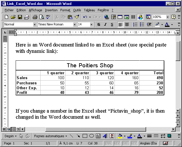 the figures in Excel they are changed in Word (Special paste with dynamic link)